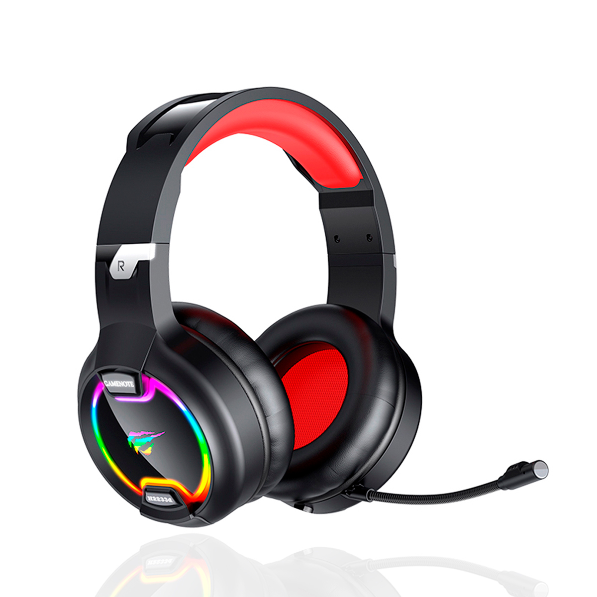 Audifono Gamer Havit H2233D, color negro y rojo. Equipado con micrófono y control de volumen, proporciona una experiencia de juego completa y conveniente.