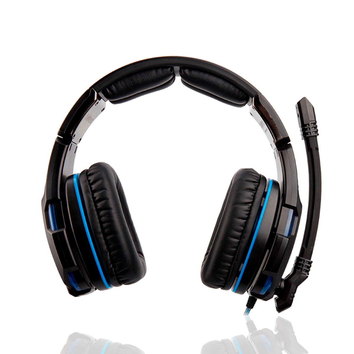 Audifono Gamer Sades Knight Pro, color negro y azul. Equipado con micrófono y control de volumen, ofrece un sonido claro y nítido durante las sesiones de juego en PC.