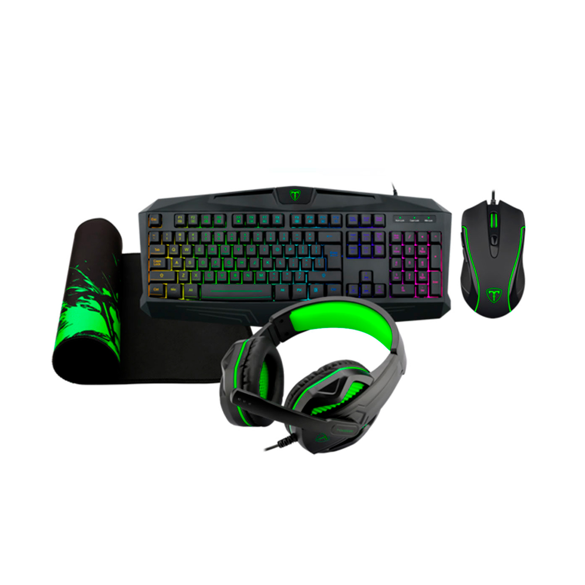 Combo completo para gamers, incluye teclado, ratón, auriculares y mousepad. Diseñado para ofrecer una experiencia de juego completa y cómoda, con rendimiento óptimo.