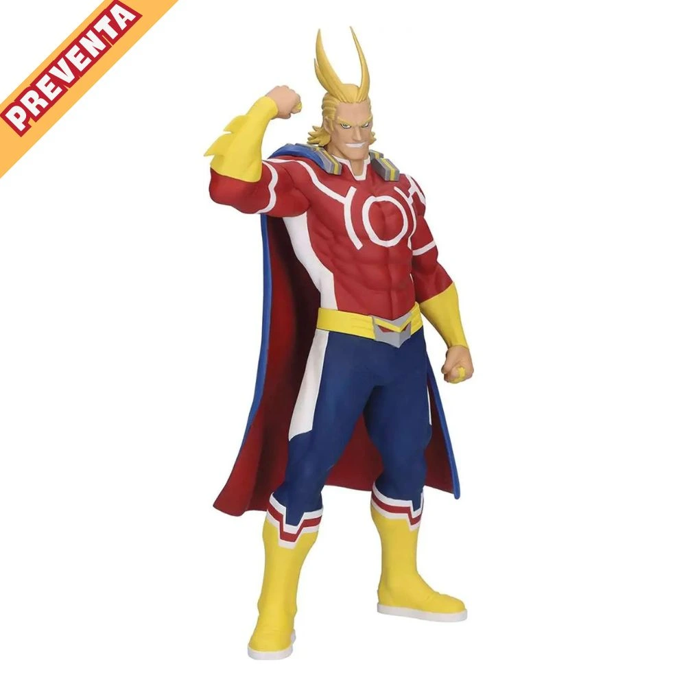 ENTREGA EN EL PLAZO DE 25 DÍAS Estas figuras se importan directamente desde Japón, por lo que al realizar tu compra consideramos un plazo de hasta 25 días para la entrega. Durante este tiempo, nos encargamos de todo el proceso de importación y envío. Una vez que el producto llega, lo despachamos por el método de envío escogido o, si lo prefieres, te notificamos para coordinar el envío directo a tu domicilio. Ten en cuenta que este plazo es referencial: en muchos casos la entrega se realiza antes del tiempo estimado. Esta impresionante figura de All Might con su capa mide aproximadamente 15cm. – Marca: BANPRESTO – Nombre del modelo: My Hero Academia – Personaje: All Might – Color: Rojo/Azul/Amarillo – Características: Figura con capa – Tamaño: Aproximadamente 15cm