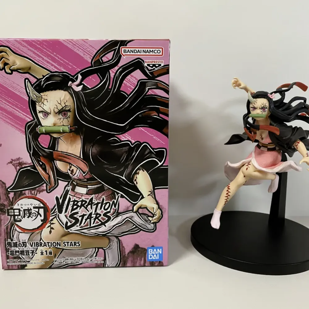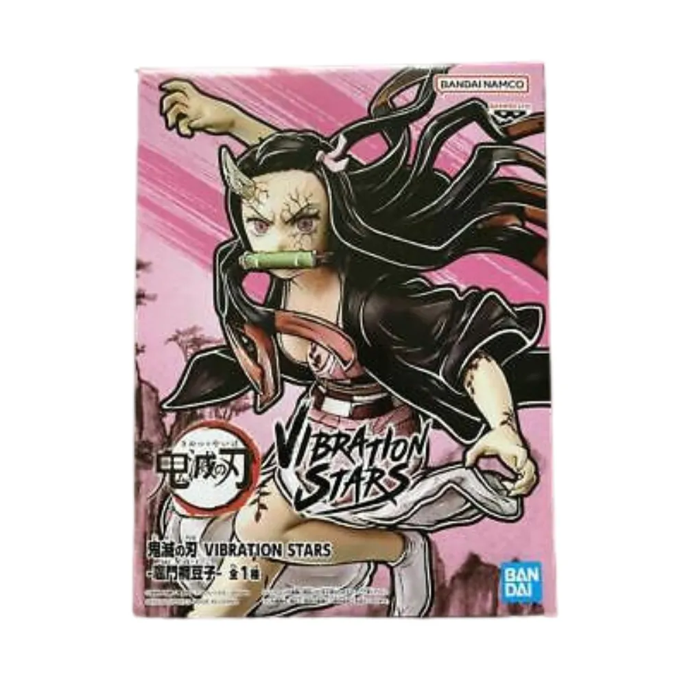 La figura Demon Slayer Vibration Stars de Kamado Nezuko presenta a la feroz y adorable hermana de Tanjiro en una postura de combate. Con aproximadamente 15 cm de altura, la figura captura a Nezuko desatando su poder demoníaco, con detalles precisos en su kimono y el bambú en su boca. La escultura y la pintura destacan la intensidad de su mirada y la energía de su pose. Es una pieza imprescindible para los fanáticos de «Demon Slayer» que quieren ver a Nezuko en acción.