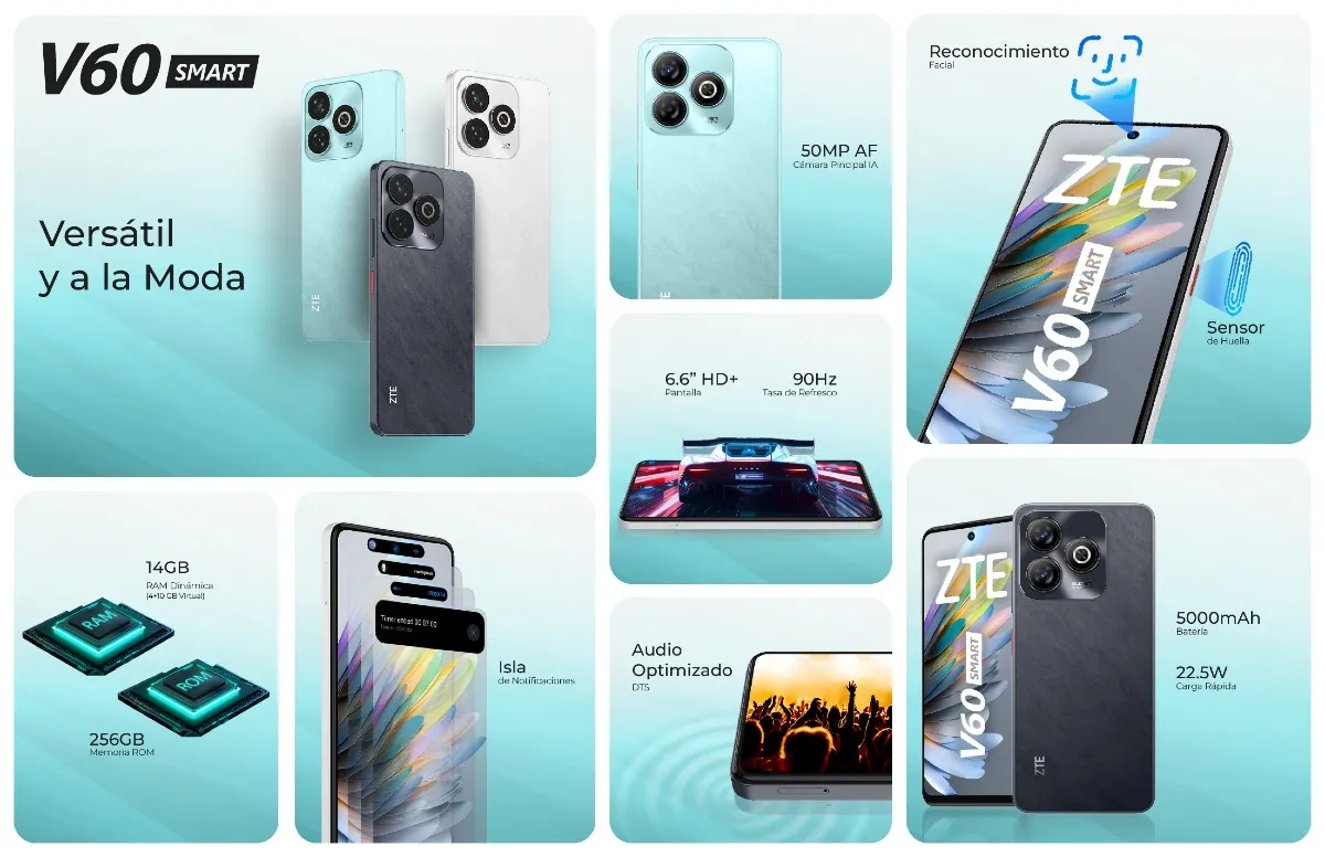 ZTE V60 Smart 4 Ram 256GB + 10GB Ram Virtuales Azul Oscuro